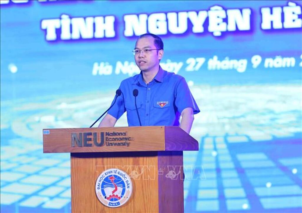 | Phó Bí thư Thành đoàn, Chủ tịch Hội Sinh viên Việt Nam thành phố Hà Nội, Trưởng ban Chỉ đạo chiến dịch thanh niên tình nguyện hè Nguyễn Tiến Hưng phát biểu. |