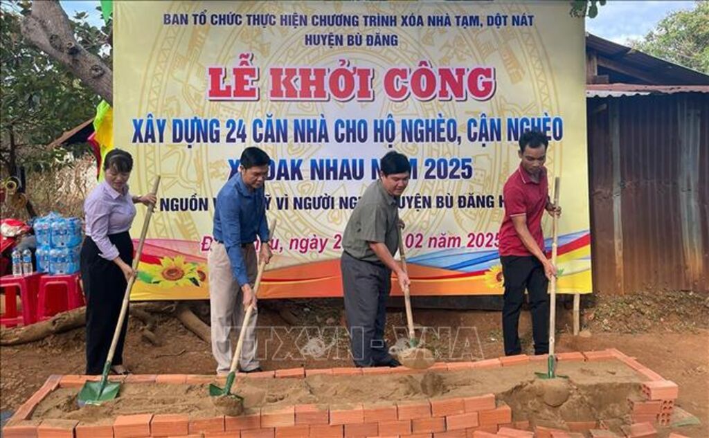 | Ban tổ chức Chương trình xóa nhà tạm, nhà dột nát huyện Bù Đăng thực hiện nghi thức động thổ khởi công xây dựng cho hộ dân có hoàn cảnh khó khăn về nhà ở. |