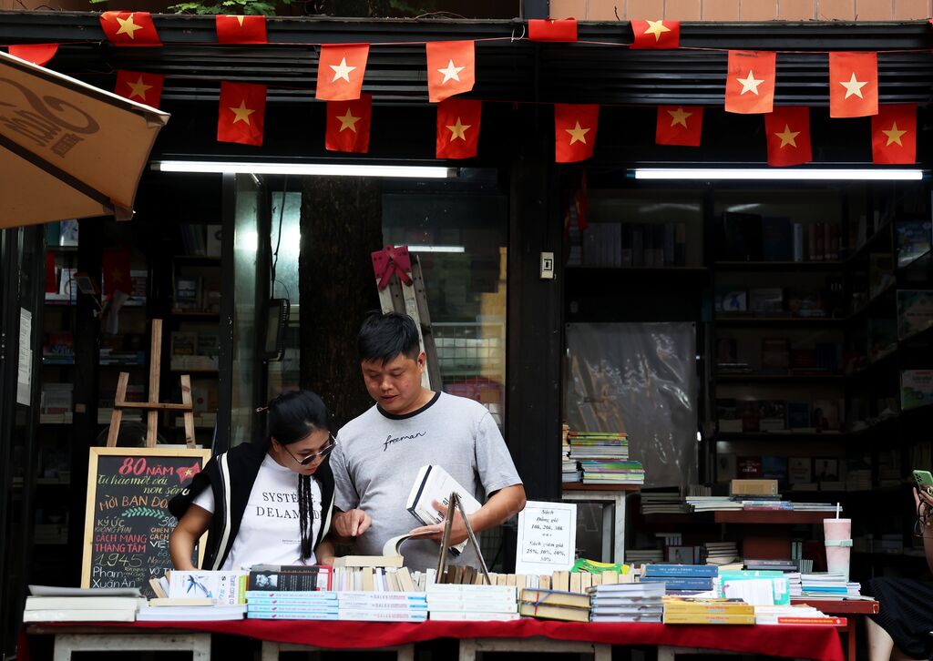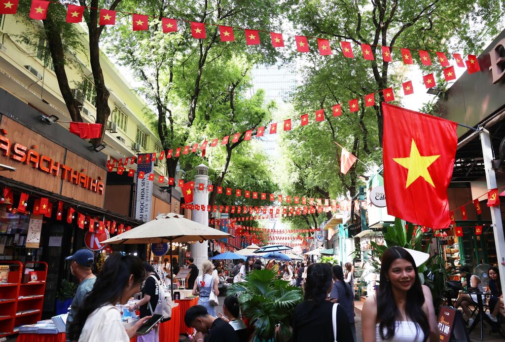 | Đường sách Thành phố Hồ Chí Minh rực rỡ cờ đỏ sao vàng ngày Quốc khánh 2/9. |