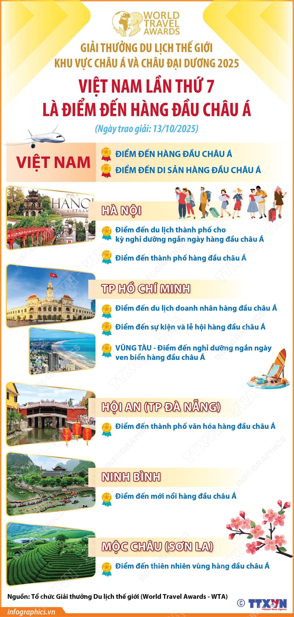 | Việt Nam lần thứ 7 là điểm đến hàng đầu châu Á |