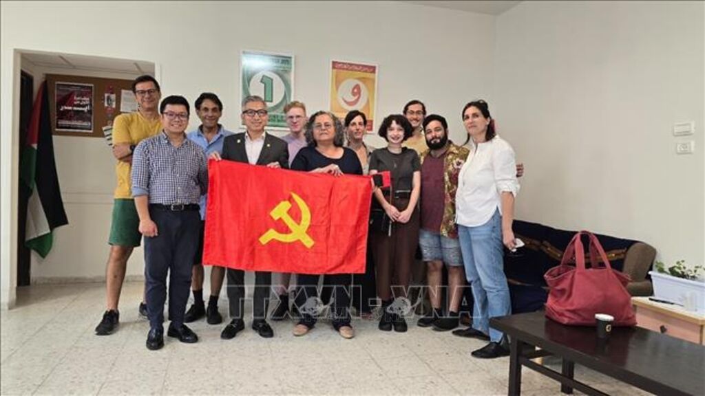 | Đại sứ Lý Đức Trung và bà Aida Tuma Suliman cùng các đảng viên trẻ của Đảng Cộng sản Israel. Ảnh: Thanh Bình -PV TTXVN tại Israel |