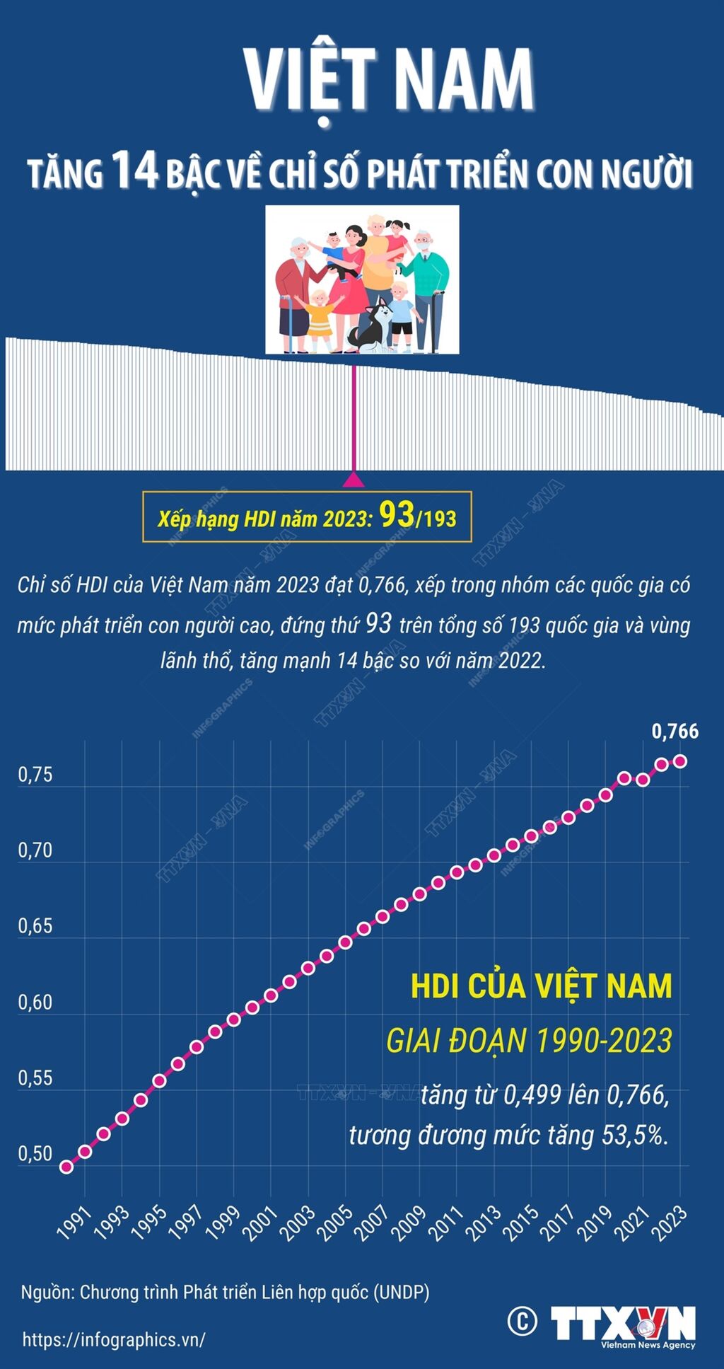 | Việt Nam tăng 14 bậc về Chỉ số phát triển con ngườ |