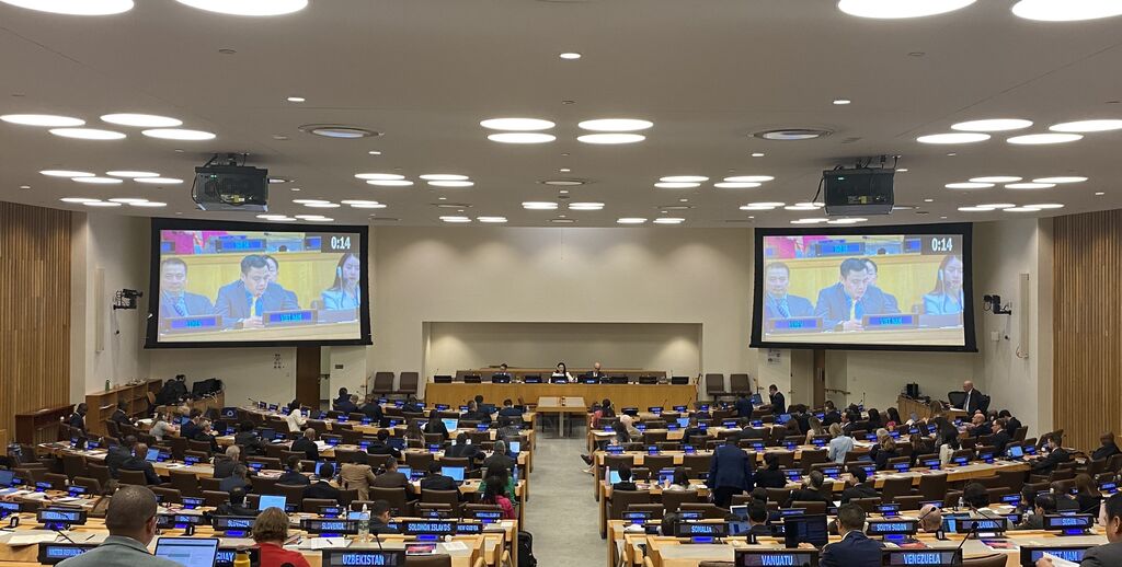 | Đại sứ Đặng Hoàng Giang, Trưởng phái đoàn Đại diện thường trực Việt Nam tại LHQ, phát biểu tại hội nghị. |