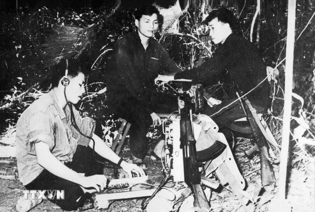 | Tổ điện báo Thông tấn xã Giải phóng điện tin từ mặt trận về căn cứ |