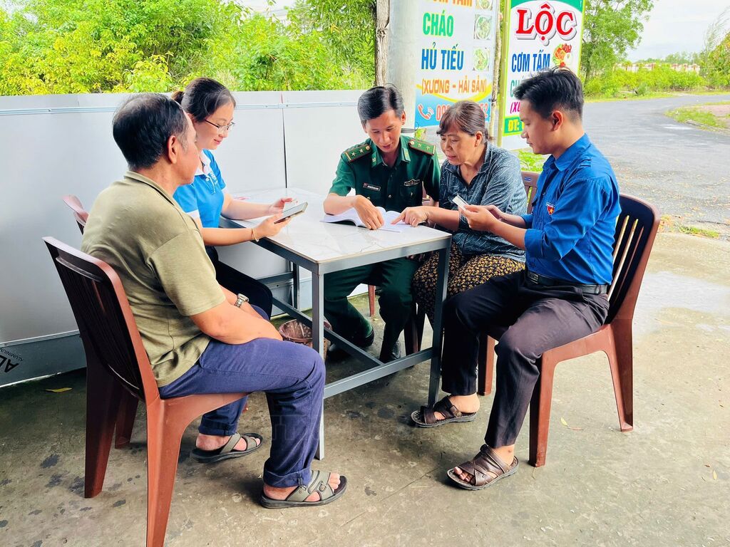 | Các tình nguyện viên tư vấn, hỗ trợ người dân đến làm thủ tục hành chính tại xã Phan Ngọc Hiển. |