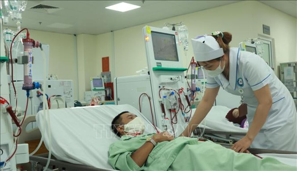 | Người bệnh suy thận được lọc máu trong tòa nhà mới xây của Bệnh viện Đa khoa Khu vực Hóc Môn. |