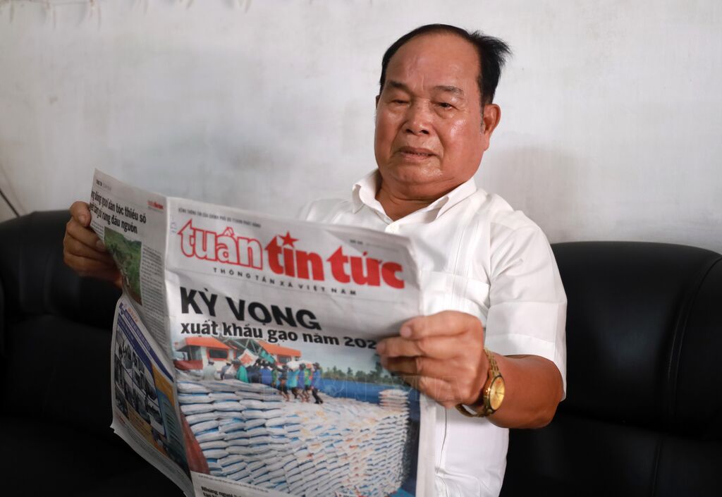 | Ông Nguyễn Đắc Tấn (cán bộ hưu trí, đảng viên 65 năm tuổi đảng) thường xuyên đọc thông tin về xây dựng Đảng trên báo Tin tức. |