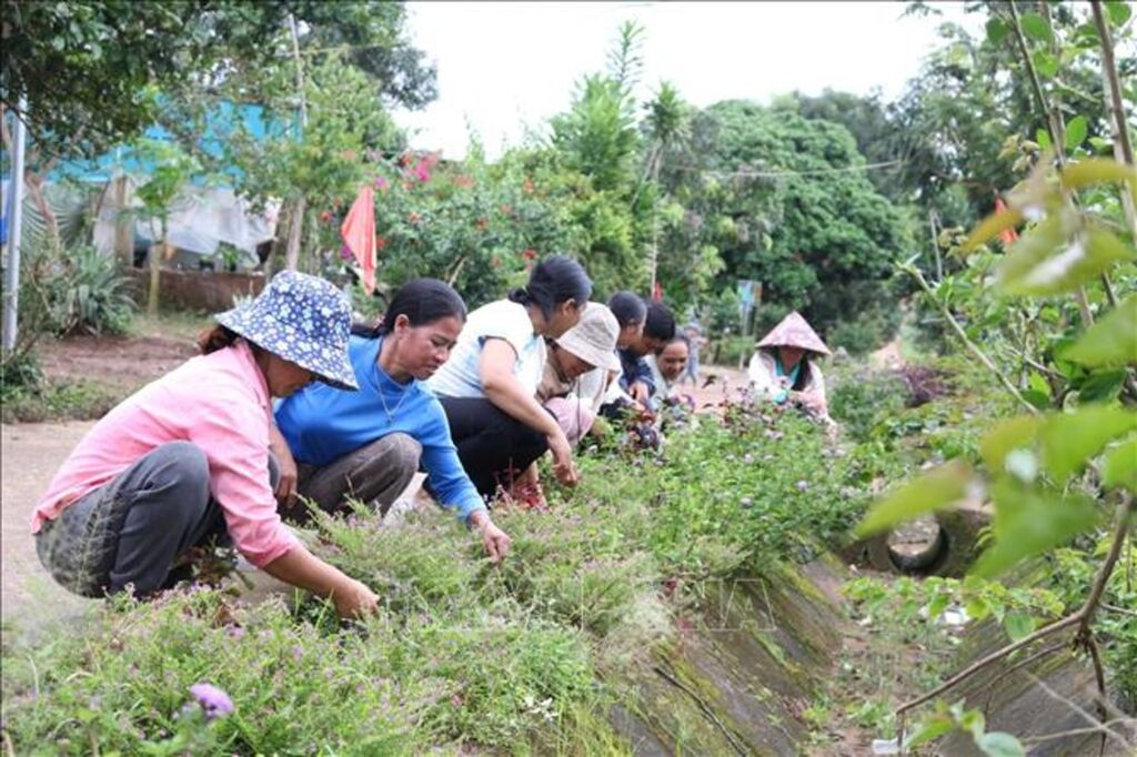 | Các đảng viên là người dân tộc thiểu số tại tỉnh Kon Tum cùng người dân vệ sinh, gìn giữ đường làng, ngõ xóm sạch đẹp, nâng cao chất lượng đời sống. |