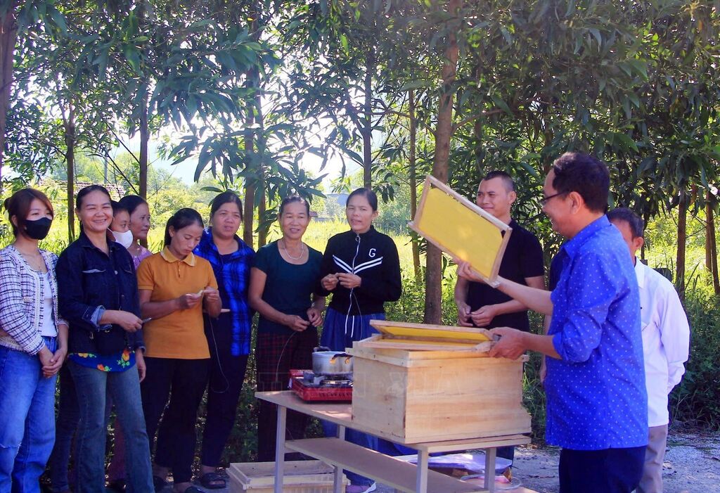 | Người dân huyện miền núi Minh Hóa (Quảng Bình) tham gia học nghề nuôi ong lấy mật |