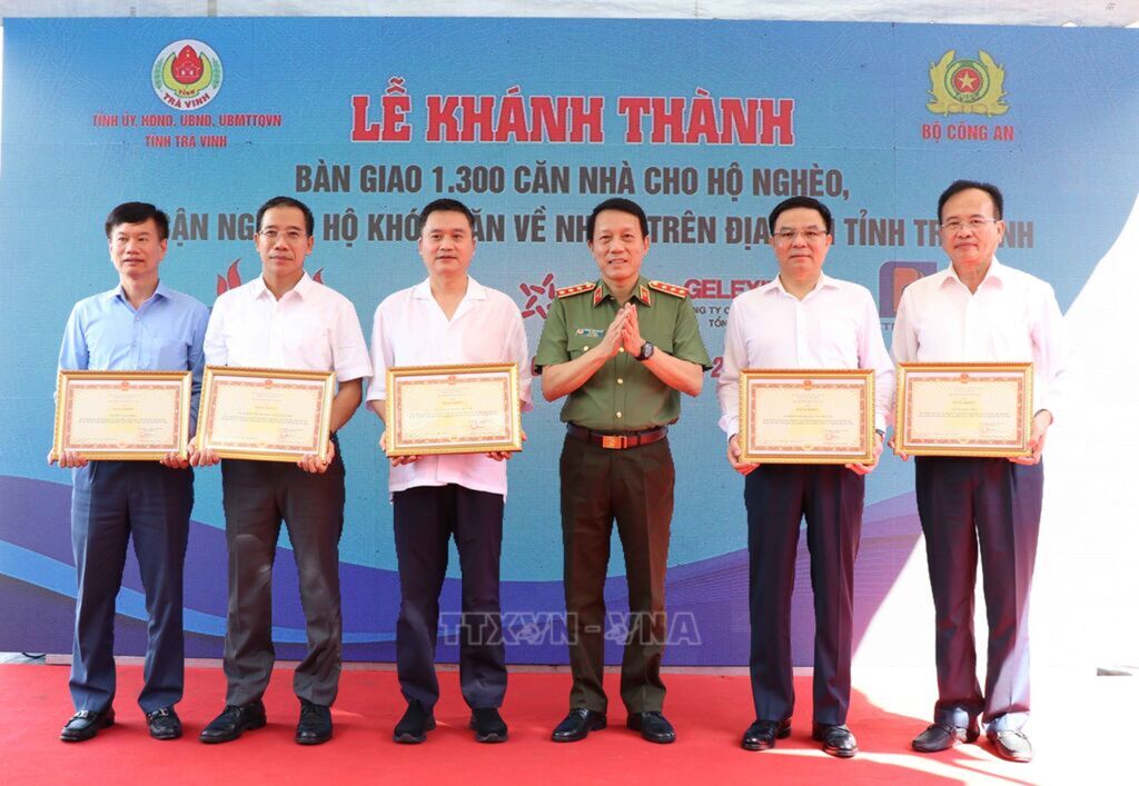 | Các đơn vị tài trợ Đề án xây dựng 1.300 căn nhà cho hộ nghèo, cận nghèo, hộ khó khăn về nhà ở cho Trà Vinh nhận Bằng khen của Bộ Công an. |