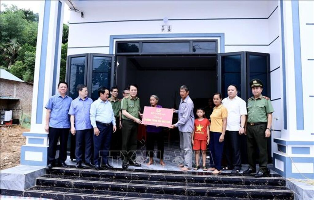 | Bộ trưởng Công an Lương Tam Quang trao hỗ trợ xóa nhà tạm, nhà dột nát cho gia đình ông Nguyễn Văn Luận, xã Minh Thanh, tỉnh Tuyên Quang. |