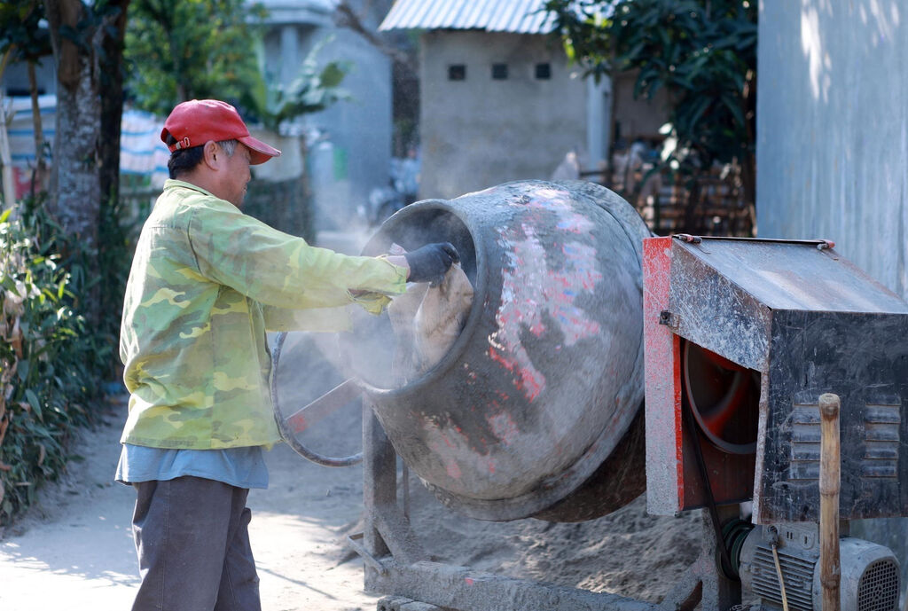 | Ông Hoàng Văn Cán ở bản Nà Củng, xã biên giới Phong Thổ (Lai Châu), tự phụ giúp anh em họ hàng cùng xây nhà để giảm chi phí xây dựng. |