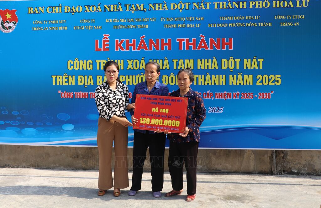 Bà Lê Thị Hoa, Phó Chủ tịch Ủy ban Mặt trận Tổ quốc Việt Nam tỉnh Ninh Bình cho biết, trong 2 năm 2023 và 2024, tỉnh đã hỗ trợ 917 hộ gia đình xây mới, sửa chữa nhà ở với tổng số tiền 78,3 tỷ đồng. Trong năm 2025, Ninh Bình có 1.338 hộ có nhu cầu hỗ trợ nhà ở (bao gồm hỗ trợ nhà ở cho người có công với cách mạng; hỗ trợ nhà ở theo các chương trình mục tiêu quốc gia và xóa nhà tạm, nhà dột nát), trong đó, 883 hộ xây mới, 455 hộ sửa chữa, tổng kinh phí hỗ trợ trên 94 tỷ đồng. Tính đến ngày đầu tháng 4/2025, số hộ đã khởi công sửa chữa và xây mới là 1.135 hộ, số hộ đã hoàn thành là 128. Tỉnh phấn đấu hoàn thành việc xóa nhà tạm, nhà dột nát trước ngày 30/9/2025.
