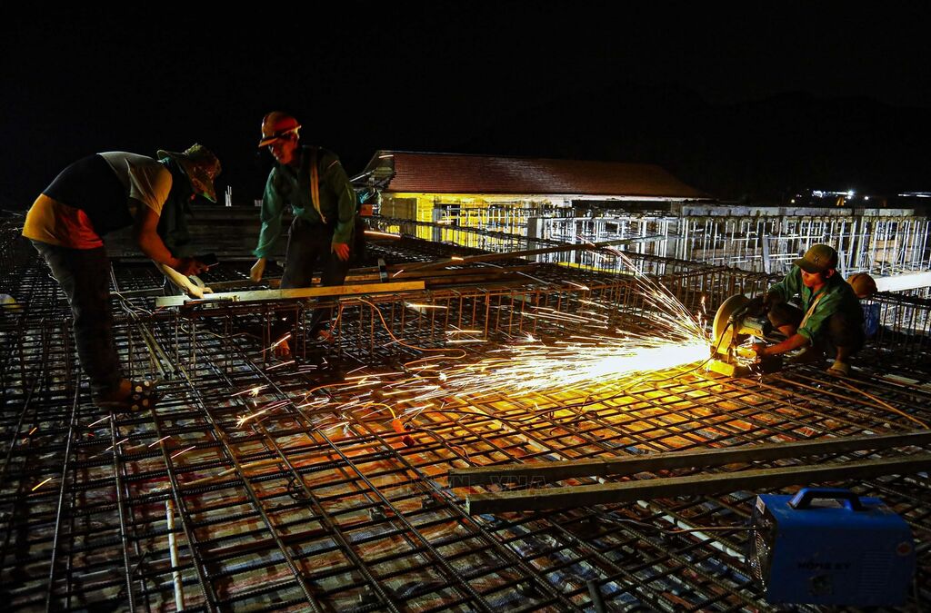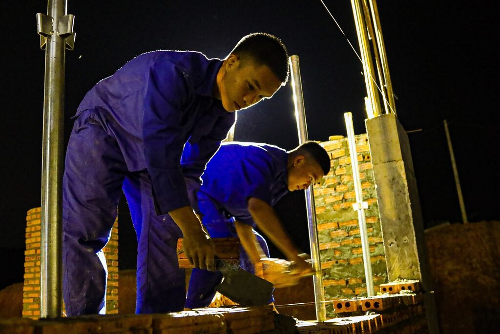 Trên công trường xây dựng Trường Liên cấp Tiểu học – THCS xã Si Pa Phìn (tỉnh Điện Biên), hơn 400 công nhân chia ca làm việc xuyên ngày đêm để kịp tiến độ. Công trình có tổng mức đầu tư 228,5 tỉ đồng, là dự án giáo dục trọng điểm đầu tiên được thực hiện theo chủ trương của Bộ Chính trị về xây dựng 248 trường nội trú liên cấp tại các xã biên giới. Đến nay, dự án đã đạt khoảng 50% khối lượng, phấn đấu hoàn thành và đưa vào sử dụng ngày 31/1/2026, đáp ứng chỗ học và nội trú cho hơn 1.000 học sinh vùng biên. Ảnh: TTXVN