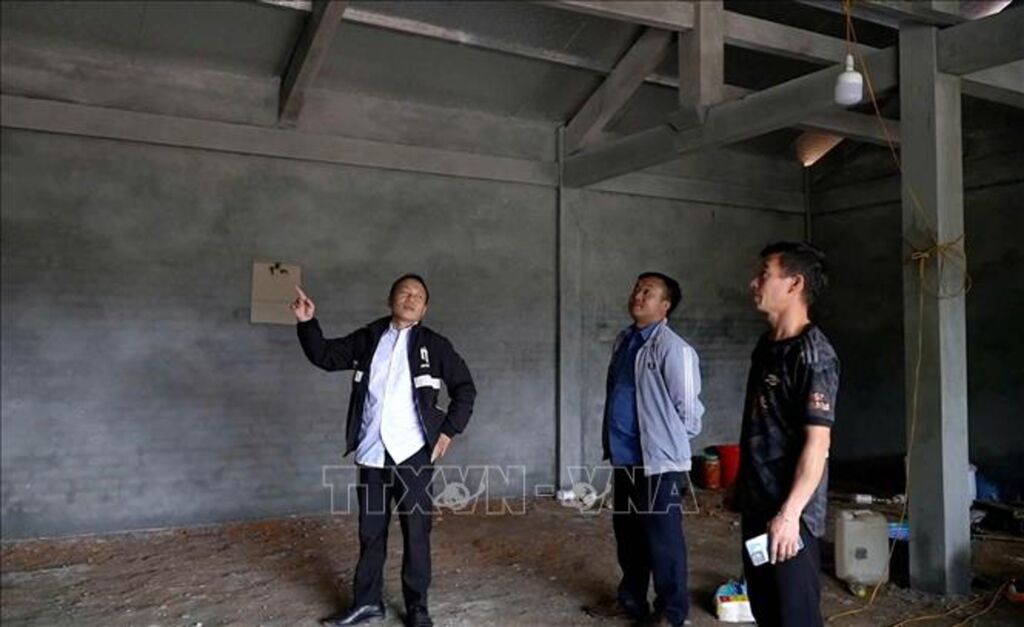 | Lãnh đạo UBND các xã, huyện Trạm Tấu (Yên Bái) kiểm tra tiến độ làm nhà của các hộ gia đình. |