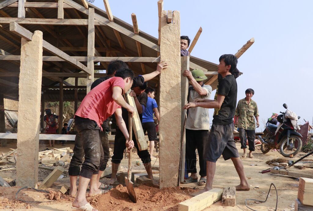| Người dân huyện Mù Cang Chải (Yên Bái) tăng tốc làm nhà. |
